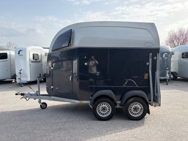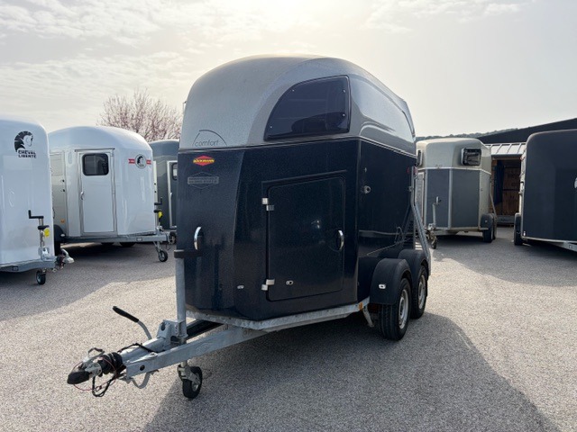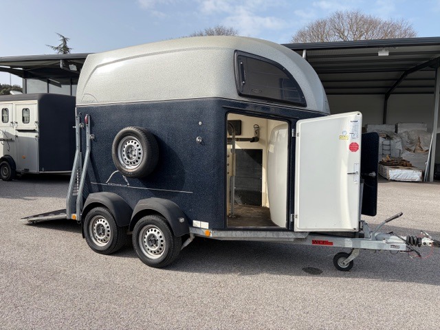 Le van à chevaux Böckmann Comfort de 2016 est un modèle deux places haut de gamme "tout polyester", reconnu pour sa longévité exceptionnelle et son design aérodynamique qui réduit la prise au vent.